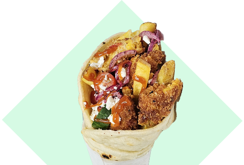 Deep fried, crispy halloumi fries, lettuce, sumac infused red onions & fries. Includes sourdough flatbread, creamy mayo and sweet chilli.
